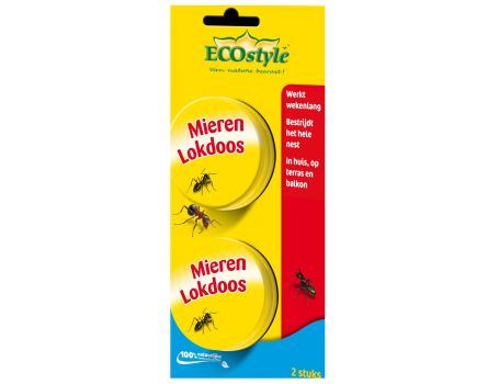 Lokdoos ter bestrijding van mieren. ECOSTYLE (4) middelen tegen VLIEGEN - MUGGEN - MIEREN - WESPEN. De poeder strooi je eenvoudig vanuit de . Deze werkzame stof wordt door de werksters meegenomen in het.